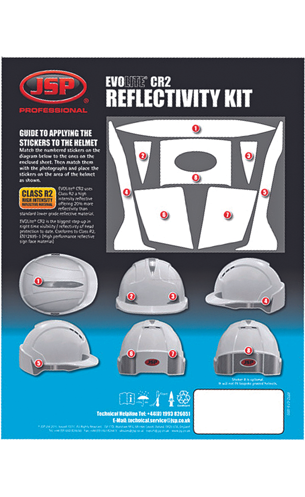 CR2 fényvisszavető matricakészlet védősisakra nagy intenzitású fényvisszavető anyagból, az extra láthatóság érdekében. Átlagosan 60%-kal felülmúlják a szabvány követelményét: Class R2 EN12899-1.