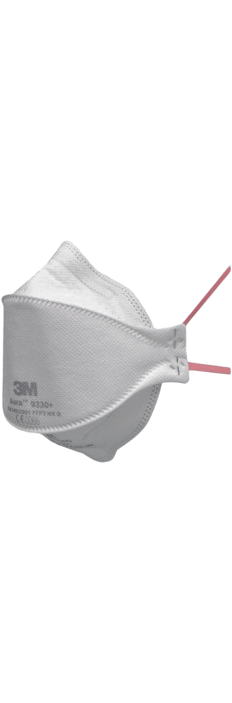 The 9330+ Particulate Filter Half Mask provides FFP3 respiratory protection with a flat-fold design, 3-panel design, low breathing resistance and an embossed, shaped top panel that can help reduce fogging. It is equipped with an innovative chin handle for easy adjustment and a color-coded headband for quick and easy identification.