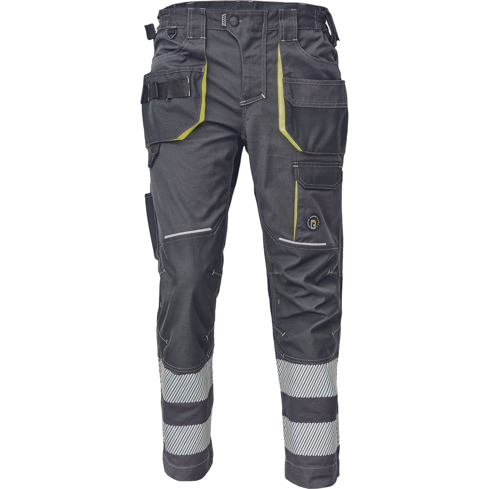 Férfi nadrág rugalmas derékkal és többfunkciós zsebekkel, 7 cm-es szegmentált fényvisszavető csíkokkal. Megerősített térdrész és térdzseb Oxford 600D anyagból térdvédő behelyezéséhez. Ellenálló hármas fedőző varrás az üleprészen és a meghosszabítható szárakon.