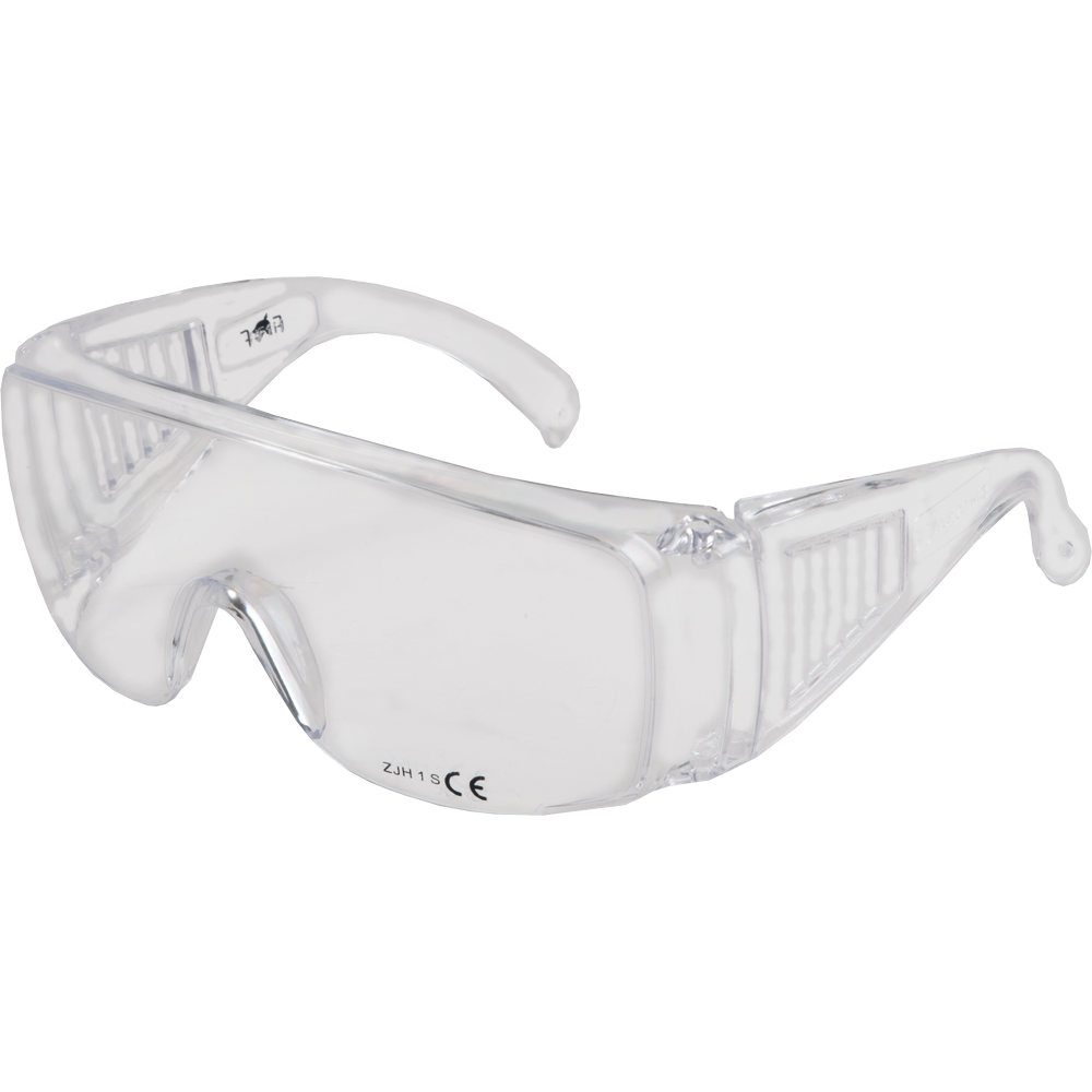 40 grammos víztiszta védőszemüveg, 1. optikai osztályú, S besorolású (közepes energiájú ütések elleni) védelmi képességgel rendelkező látómezővel . 1S EN 166.