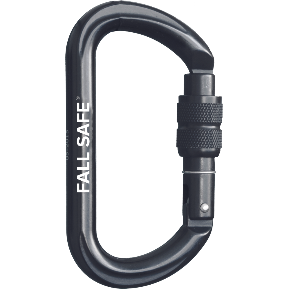 Fall safe aluminum oval carabiner (FS820) standards: EN 362: 2004 (B), EN 12275: 1998 weight: 0.079 kg opening: 19 mm CHARACTERISTICS: oval aluminum carabiner with screw lock and strength 25 kN