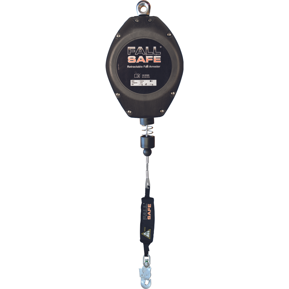FALL SAFE® FS934 Fall arrest block is designed to be used as single person fall protection devices. Features a mobility enhancing swivel-top, a rugged and durable housing, and a unique braking system that eases shock in the event of a fall. Swivel steel snap hook with fall arrest indicator, energy absorber integrated at swivel hook. Maximum load: 136 Kg (1 user only!) 4,225 Kg