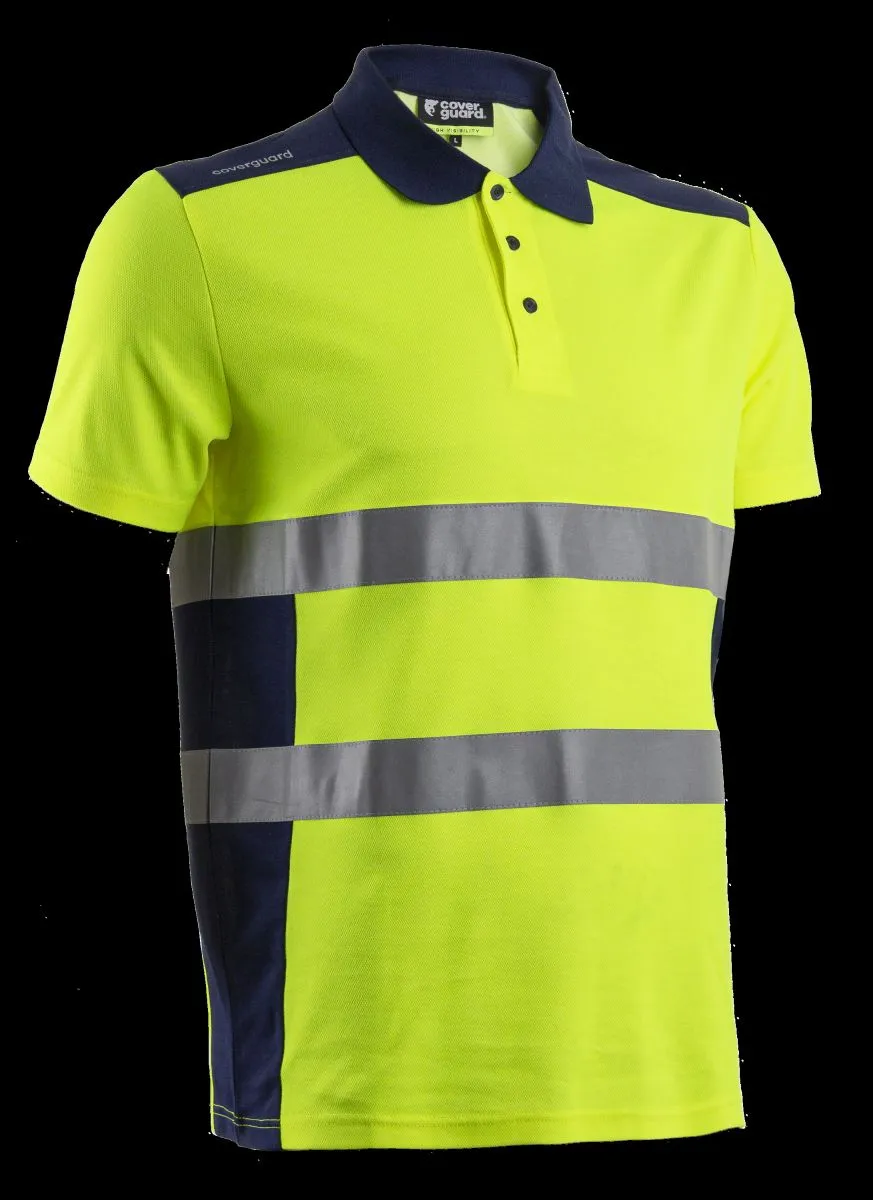 OKI fluo sárga/sötétkék rövid ujjú galléros póló_L